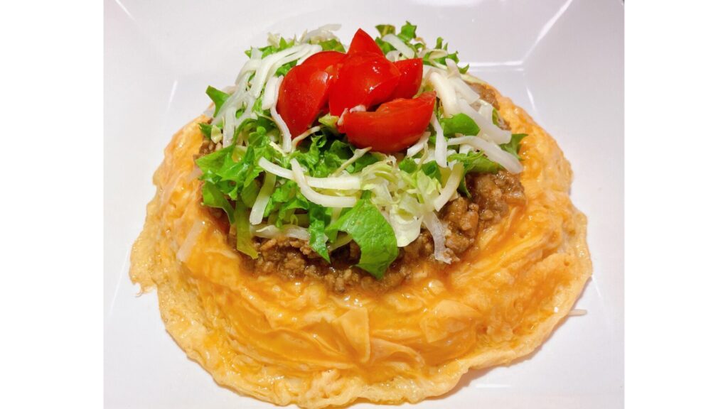 メキシコ生まれで沖縄のソウルフード【タコライス】と【オムライス】がコラボした当店オリジナル商品です。
