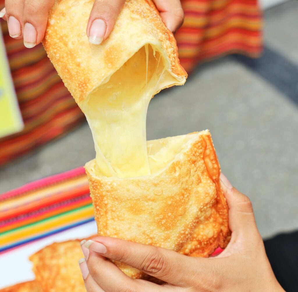 ブラジルではこの揚げチーズパステルはとても人気があり、溶けたチーズがたっぷり入っていて、生地はとてもサクサクしています。