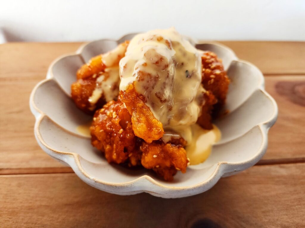 大人気キッチンせんちゃんのヤンニョムチキンにとろけるアリゴをトッピング!