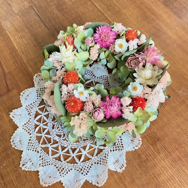 ドライフラワー教室 春色リースのドライフラワーアレンジ