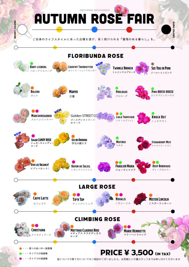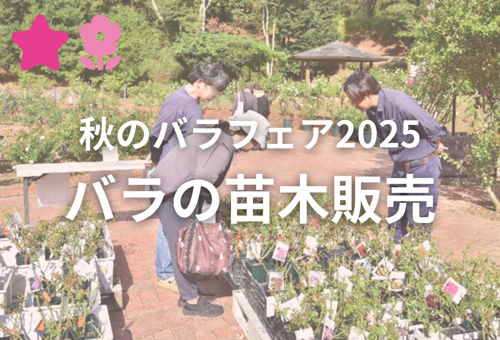 イベント バラの苗木販売 開催日 2025年10月18日(土) 〜 2025年11月16日(日) 開催時刻 9:00〜16:30 秋のバラフェア2025では、毎年恒例の「バラの苗木販売」を実施します!本イベントでは、バラ園スタッフがお薦めする苗木を約25品種以上350株を販売します♪バラを初めて育てる初心者にもおすすめの苗木を取り扱っています! 販売場所には、バラ スタッフが常駐していますので、「育て方がわからない。。不安。。」というお客様でも安心して購入することができます!販売する苗木の種類は、下記の通りです。 イベント一覧を見る
