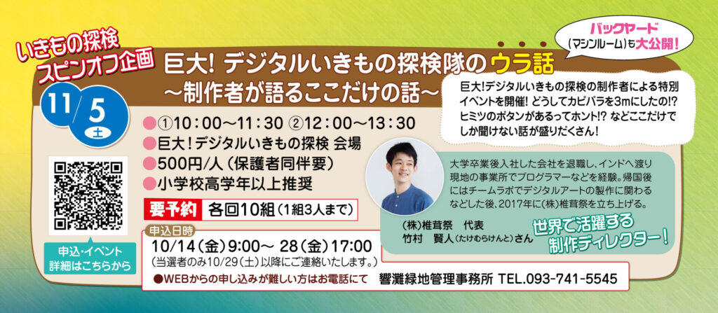 今回、巨大!デジタルいきもの探検を制作した竹村賢人(たけむらけんと)さんに、ここだけでしか聞けないお話をしていただきます。