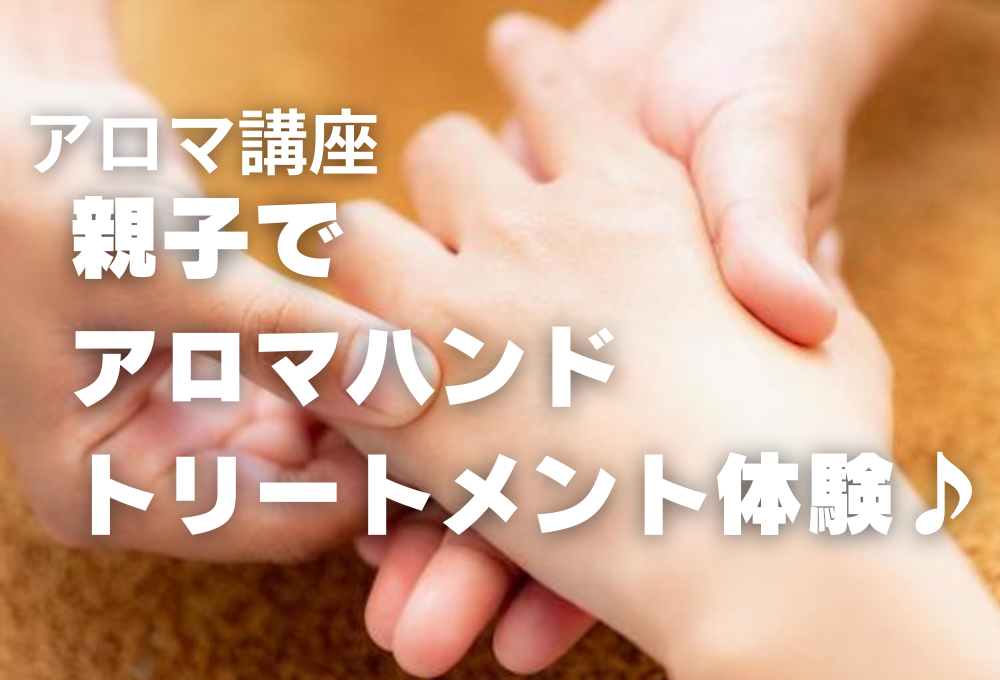3月のアロマ講座は、親子でアロマハンドトリートメント体験をして頂きます。