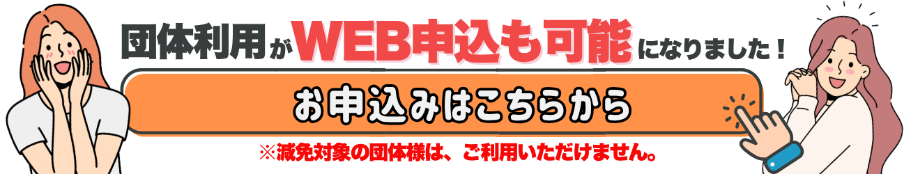 団体利用を申請するには、専用の申請書にて利用予約をしていただく必要がございます。