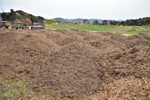 6年間、植物管理課のバックヤードに集積した廃木材の体積は約1,000㎥。この廃木材はチップ化することで、植物基盤の土壌改良材として生まれ変わり、グリーンパークで育てる樹木や花等の生育環境の改善に役立てます。