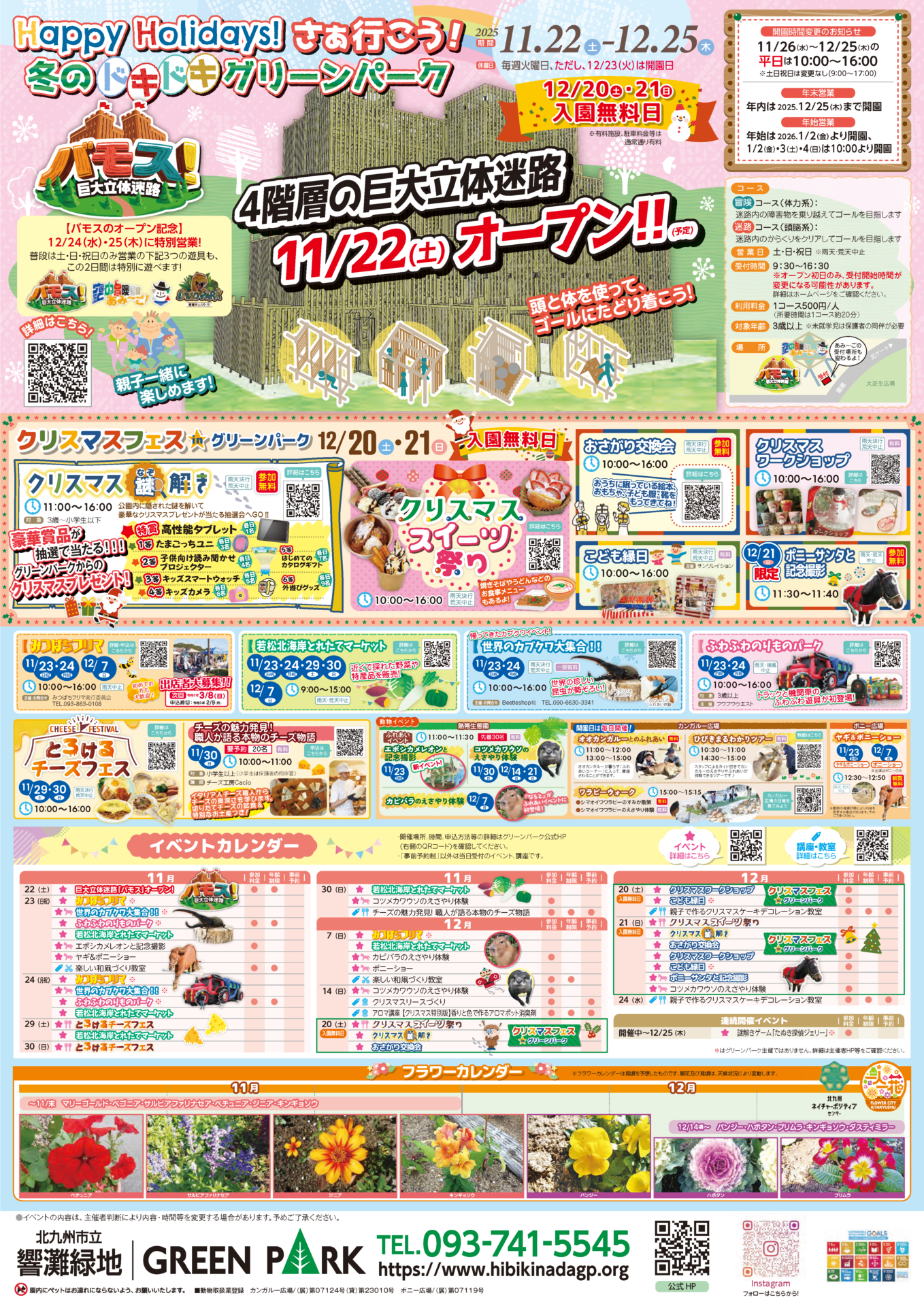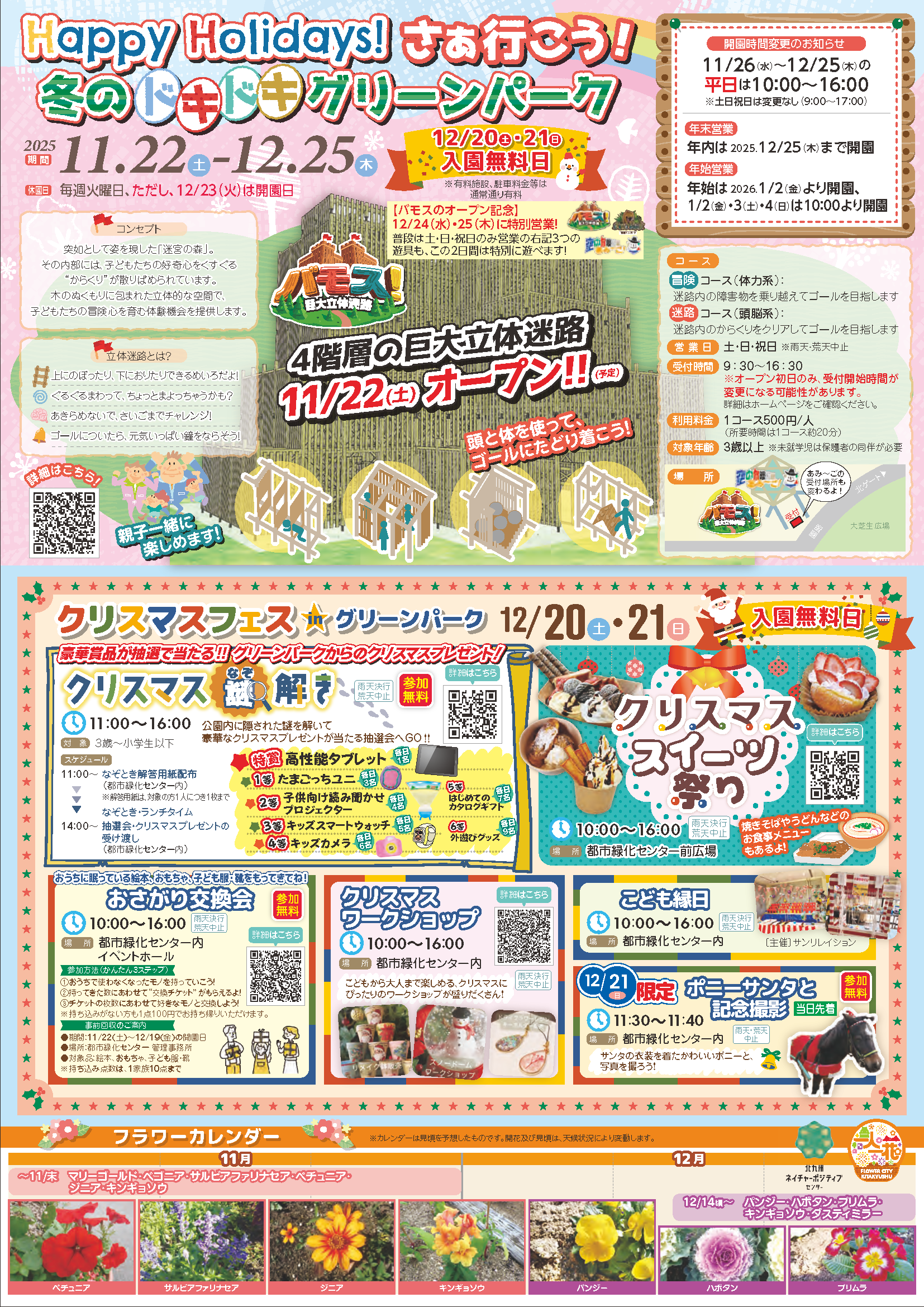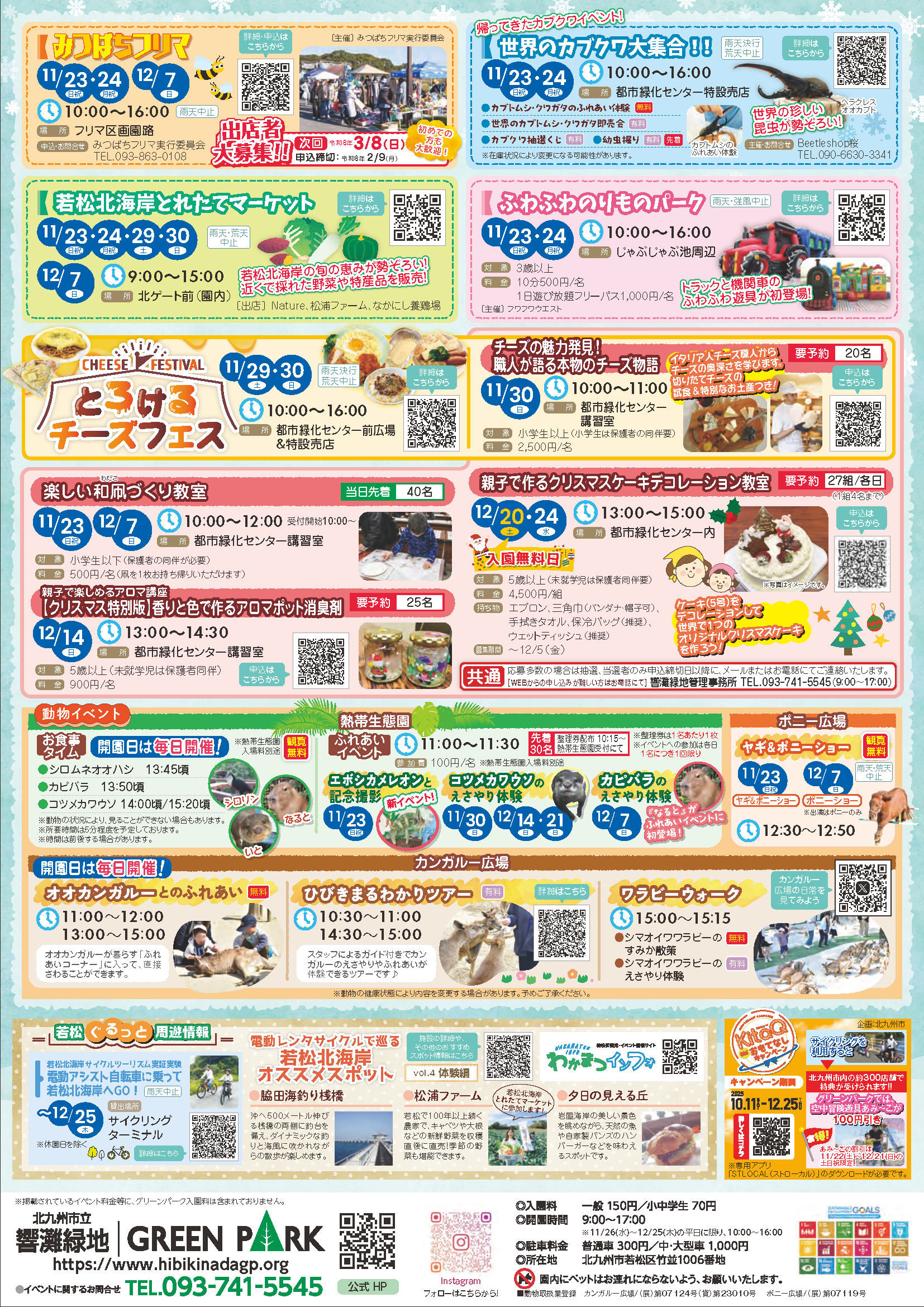 パンフレット TOP>パンフレット Green Park Guide & Map ※2歳~未就学児の乗馬体験 平日休止 グリーンパーク熱帯生態園へようこそ 近日公開 概要はチラシからご確認ください GREEN PARK ROSE GARDEN GUIDE &MAP 各施設 ※オニオオハシ、ワライカワセミは現在当園にはおりません。ご了承ください。 ※2歳~未就学児の乗馬体験 平日休止 イベント 年末チラシ(表面) 年末チラシ(表面) 年末ポスター(イベント全般) 年末ポスター(食イベント)